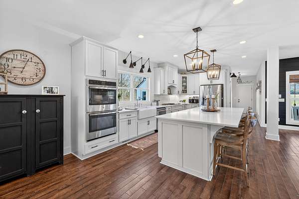 - Cooktop, Dishwasher, Disposal, Double Oven, Electric Oven, Gas Range, Microwave, Refrigerator, Smart Appliance(s), Stainless Steel Appliance(s)