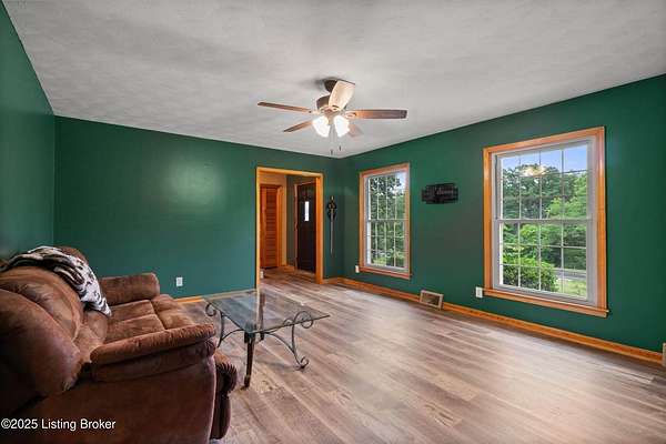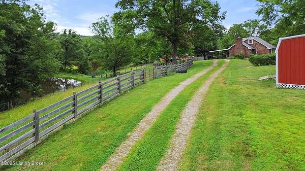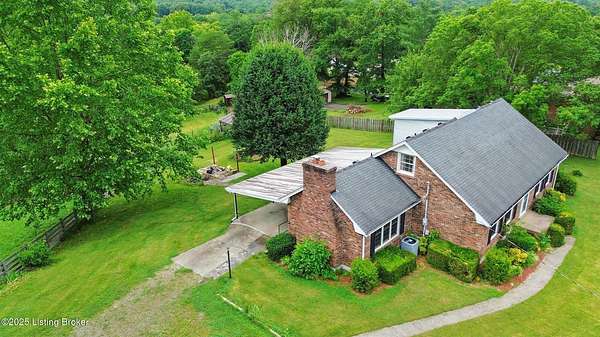 A little piece of heaven awaits you at 10640 New Haven Road! This 10.31-acre hobby farm offers the perfect balance of peaceful country living with the convenience of being just minutes from Historic Bardstown, KY. Bring your cows, horses, goats, chickens--all your animals are welcome here! The property features a charming 1.5-story brick Cape Cod home with 4 bedrooms, 2 full baths, a partially finished basement, and an attached 2-car carport. Inside, you'll find hardwood, vinyl plank, and tile flooring throughout. The home has been thoughtfully updated, including a new heat and air system in 2021. The spacious floor plan offers both a large living room and a separate den with a cozy fireplace, perfect for relaxing or entertaining. The eat-in kitchen provides ample space.