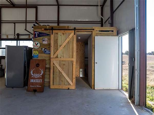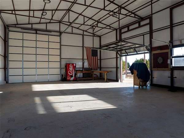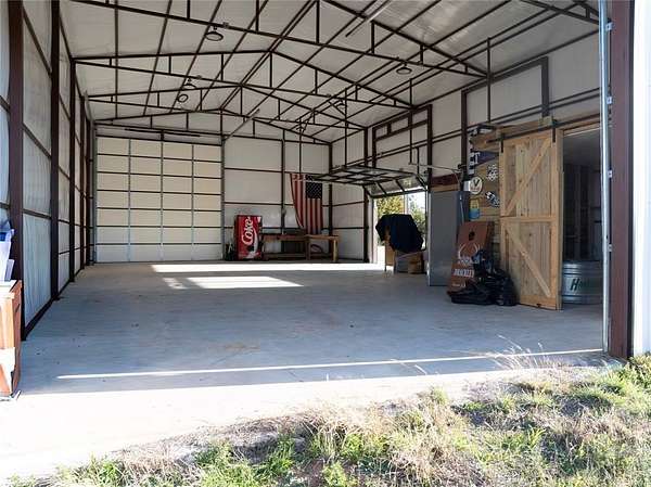 This shop is truly a must see! Situated on a perfect corner lot, this fully fenced 5.01 acre property offers a large flat area ideal for building your dream home. With dual street access, you have flexibility and convenience. The shop is approximately 30 ft by 50 ft, about 1500 square feet, plus a 12 ft front porch. It has true drive through access with multiple overhead or dock style doors on both sides, including window panels for natural light and visibility. The possibilities are endless! Great setup for storage, equipment, projects, or a workshop. Schedule a tour to see the shop and property layout in person.
