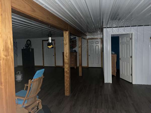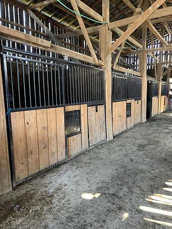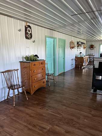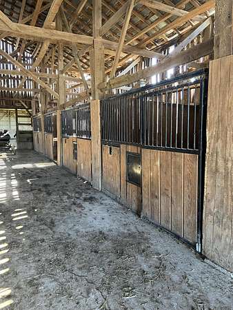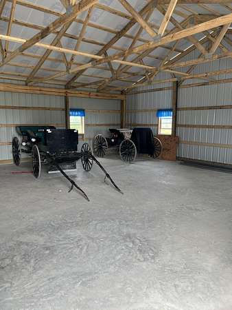 This is an Amish working farm, 20 acres that is fenced and cross fenced. There is a fantastic 6 bedroom house, spacious kitchen area, pantry, and large great room with wood stove. 10 stall barn, with tack room, and 60x80 Indoor Arena. Stalls are 12x10. Electric and water up to barn and in front of the house. The home does not have, electricity inside, or water, or septic. All of these things can easily be added, if desired. A finished detached basement, could be more living space. It has a great room, storage room, and a large pantry, currently. There is a pond in the back of the property that has a beautiful setting for wonderful sunsets. This is a very well planned farm, home and basement, only a few years old. Buyer to verify lot lines. Just Finished, full basement with one bedroom and large living room, open concept with wood columns. Three car garage is brand new, large enough for full size truck.