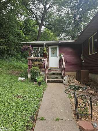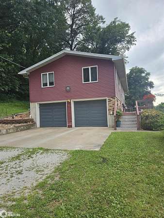 From Nauvoo into Niota on Highway 96 turn right on County Rd 2820 about 1/2 mile before coming into Niota. House is on the bluff on the right side of the road.