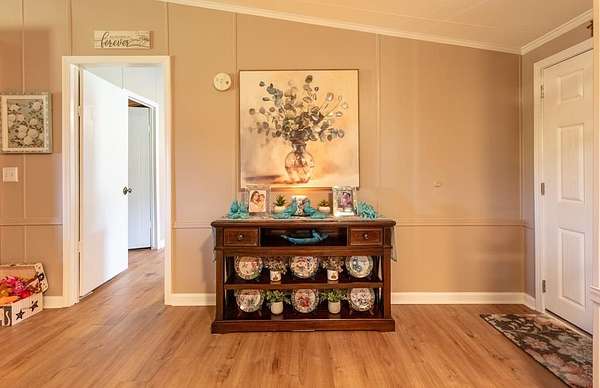 Situated on 3.44 acres on Egg and Butter Road, this beautifully upgraded 3-bedroom, 2-bath manufactured home offers the perfect blend of space, comfort, and functionality. If you've been searching for land with a pond and room to spread out, this is it. The home has been recently updated with new windows, flooring, and siding, giving it a fresh, move-in-ready feel. Inside, you'll find a spacious floor plan with high ceilings in the living area, creating an open and inviting atmosphere while still offering separation where it matters most. Step out back and enjoy the deck — the perfect spot for relaxing afternoons with sweet tea, lemonade, or hosting family barbecues. But the value doesn't stop there. The property also features a detached three-car shop wired with electricity — ideal for storing vehicles, running a business from home, or creating the ultimate workspace. Additional features include a durable metal roof and plenty of room to truly enjoy your privacy. This is a rare opportunity to get land, upgrades, and functionality all in one — a must-see property offering incredible value for the price.