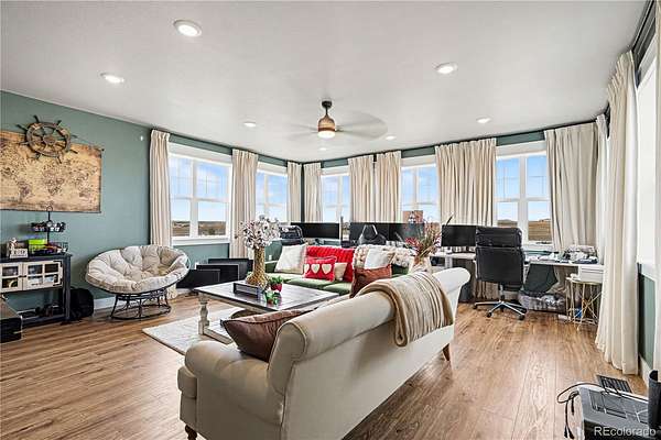 Set on an expansive 52 acres of rolling Colorado landscape, 1065 Rising Sun Ave offers a rare blend of luxury living, wide-open space, and breathtaking natural beauty, all framed by stunning, unobstructed views of Pikes Peak. The main residence is designed for both comfort and entertaining, featuring 5 spacious bedrooms and a fully finished basement that provides endless flexibility for a media room, gym, or additional living quarters. Upstairs, a massive loft showcases panoramic views that truly have to be seen to be believed, perfect for a home office, relaxation space, or creative retreat. At the heart of the home, the chef’s kitchen is built to impress with high-end finishes, ample workspace, and a thoughtfully designed hidden pantry that keeps everything within reach yet out of sight. Beyond the main home, the property continues to deliver. A 40' x 60' outbuilding offers incredible versatility, complete with its own private living space featuring a bedroom, full kitchen, living room, and laundry, ideal for guests, multigenerational living, or potential rental income. For those who love the outdoors or need space for equipment and toys, this property checks every box. Two oversized 14' x 12' doors provide easy access and abundant storage, while full RV hookups and a dedicated RV dump make hosting or traveling effortless. Whether you're looking for a private retreat, a functional homestead, or a property that can truly do it all, this one-of-a-kind Elizabeth estate delivers unmatched space, views, and lifestyle.