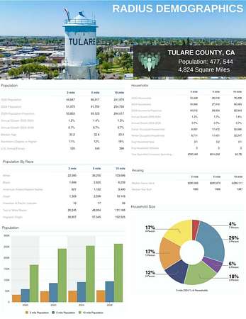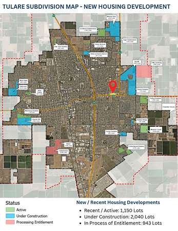 Est $6,754/moProperty has plans to build two 6,000 sq ft metal buildings with storage yard Plus addition metal building approved by City of Tulare site plan review committee. Edison on edge of property. Curb and gutter on front of property. Fire hydrant on edge of property. Sewer line on property. Shovel ready.