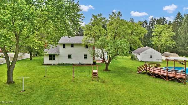 Nestled at the end of a quiet cul-de-sac, this well-maintained 4-bedroom, 2 full bathroom Colonial home offers the perfect blend of comfort, space, and privacy, situated on 3 parcels totaling almost 4 acres. Step inside to find a welcoming layout with a first-floor bedroom and full bath, ideal for guests or multi-generational living. Enjoy peace of mind with Anderson windows installed in 2018 and a newer roof (2022). The full basement provides a fully finished recreation area, bonus room and ample storage space for all your needs. Pool table stays!!! Outdoors, relax on the covered front porch overlooking a charming water feature, or entertain by the above-ground pool with deck during the summer months. A well lit 22x30 outbuilding/garage with concrete floors and electricity is perfect for hobbies, storage, workshop or to house those extra cars! Additional features include city water and sewer, a private driveway, and a home warranty included for added peace of mind. This rare property offers the serenity of country living with the convenience of village amenities. Don't miss this unique opportunity in Grafton!