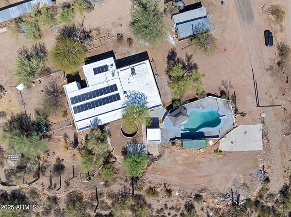 Discover this beautifully renovated 3-bedroom, 3-bath home with owned solar, private well and an attached casita, perfect for guests or rental income. Enjoy the sparkling pool and owned solar system that reduce your energy costs. Situated on 2 acres of horse property, it features stables and ample space for horses, toys, and animals. The interior boasts brand-new floors, fresh paint inside and out, and modern bathroom vanities, creating a bright, inviting atmosphere. Whether you're relaxing by the pool, tending to your horses, or enjoying the spacious property, this home offers comfort, versatility, and plenty of room to grow. Perfect for outdoor enthusiasts and animal lovers alike!