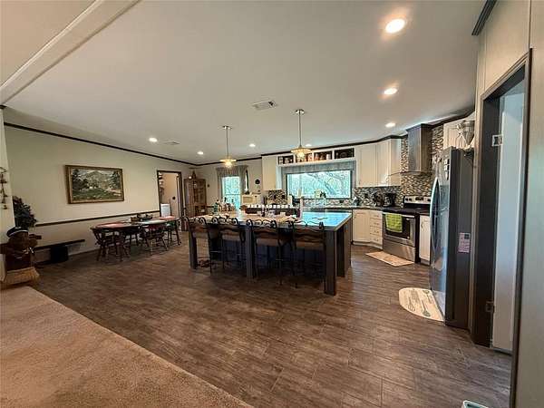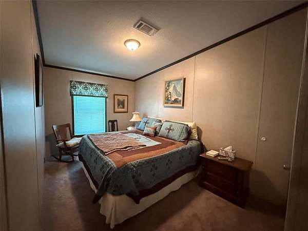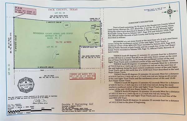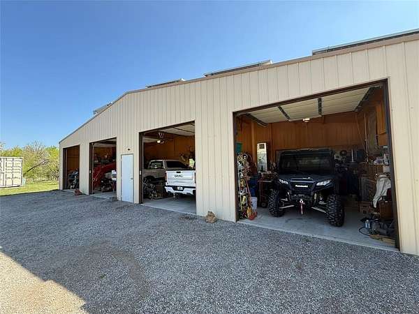 Exceptional 70.70-acre turnkey ranch loaded with improvements and recreational appeal with 7 strand barbed wire fencing around most of the property. Features a 2017 Palm Harbor home (2,584 sq ft) built with upgraded 2x6 walls, energy-efficient windows, and Zone 3 insulation, set on concrete runners with a pier system and anchored every 6 feet. A 25x60 insulated shop with HVAC provides excellent workspace. The land offers 4 ponds (3 stocked with Texas largemouth bass, channel catfish, and brim) FREE WATER and ELECTRICITY via 3 producing water wells, multiple 2,600-gallon storage systems and an aquasana water filtration system PLUS a rainwater collection with its own 2,600 gallon storage tank. Solar system includes 28 SunPower panels, Sol-Ark inverter, and 2 battery backup. Two turf runways approx. 1,100 ft make this a rare find for STOL enthusiasts. RV hookups, covered pavilion, climate controlled storage container, and prime hunting setup complete the package.