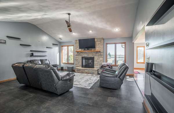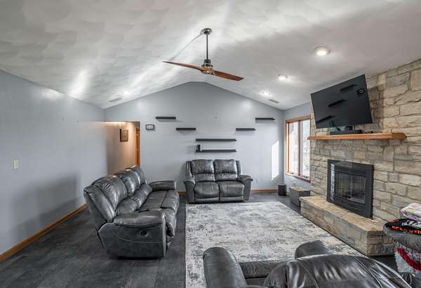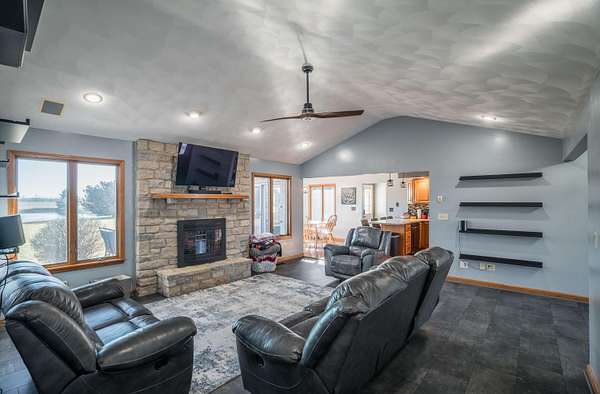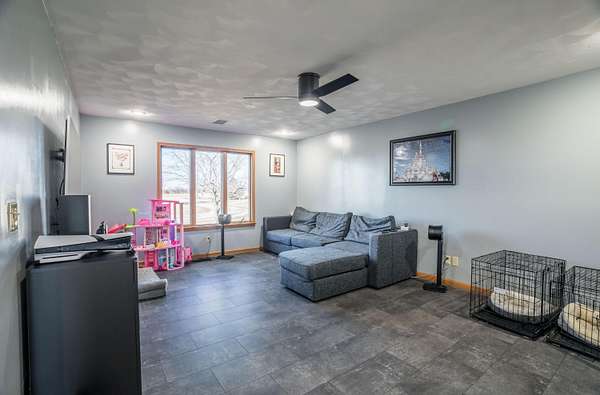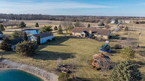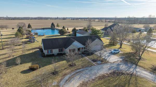 Welcome to peaceful country living in the highly desirable Hardin-Houston School District! This spacious 3-bedroom, 4-bath home offers comfort, efficiency, and versatile living space inside and out. The fully finished basement expands your options with a potential 4th bedroom and a convenient kitchenette complete with stove and refrigerator that does convey--perfect for guests, multi-generational living, or entertaining. Major updates provide peace of mind, including a new geothermal heating and cooling system (2021), new water heater (2021), new water softener (2022), and a new dishwasher (2026). Step outside to your own private retreat featuring a beautiful 1/2 acre pond complete with gazebo--an ideal spot to relax and take in the views. Pond equipment and the paddle boat convey, making it easy to enjoy from day one. A 3-bay detached building offers excellent storage and workspace, with one bay heated and insulated for year-round use. A separate shed provides additional storage for pond equipment and lawn tools. The home also includes a 220/50 amp Tesla charger that conveys with the property. If you're looking for space, functionality, outdoor enjoyment, and thoughtful updates this property delivers.
