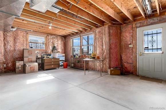 An unfinished basement has great walkout space, a new concrete floor, and plenty of room for all your hobbies.