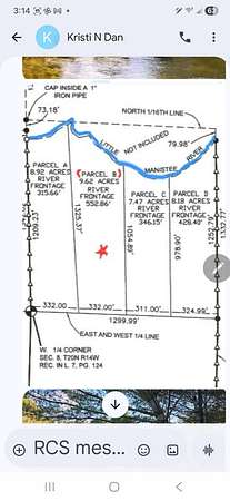 Est $2,091/moExcellent Little Manistee Riverfront acreage parcel with adjoining acreage and river frontage currently available. Electric is available on site. Offers over 300' of gorgeous trout and salmon stream frontage.