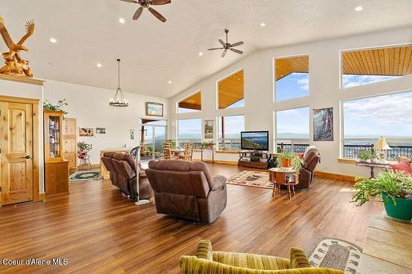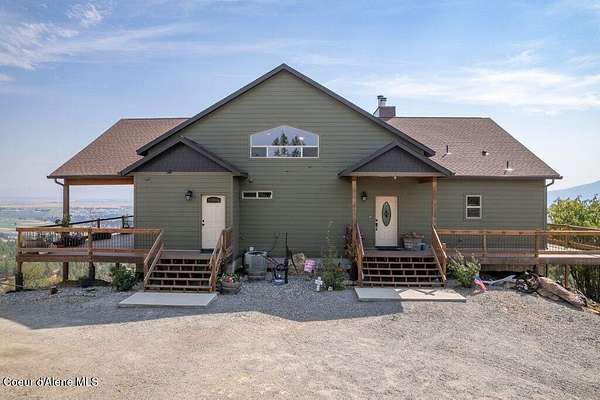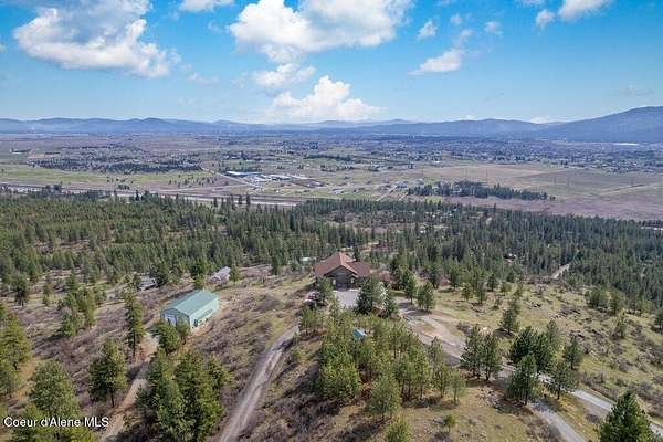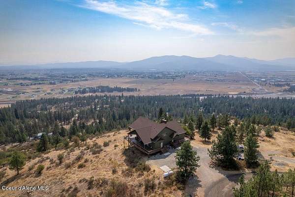 Imagine waking up every morning to sweeping mountain views, fresh North Idaho air, and complete privacy on your own 10.22-acre retreat. Perched high above it all, this 3,780 sq ft home was designed to bring the outdoors in--with expansive windows and a 12-foot covered wraparound deck that showcases nearly 360 degrees panoramic views from Hayden Lake to Washington. Whether it's morning coffee at sunrise or unwinding at sunset, every moment here feels elevated. Inside, the home offers 3 bedrooms and 3 bathrooms with warm, inviting spaces built for comfort year-round. Cozy up by the wood stove on snowy evenings or enjoy the ease of central A/C during the summer months. Every room captures a view--but the primary suite is something special... wake up to Mt. Spokane from your shower, then relax in the jetted tub with Tower Mountain as your backdrop. Step outside and experience what truly sets this property apart. A 40x60 heated and insulated shop with 200-amp service gives you room for all your toys, projects, and storage--without sacrificing views. At the top of the property, a charming two-story lookout/playhouse offers a private escape with some of the best vantage points around. The land is beautifully low-maintenance, giving you more time to enjoy what matters--quiet mornings, wildlife sightings of deer and moose, and evenings spent on the deck watching fireworks light up the skies over Silverwood, Coeur d'Alene, and Liberty Lake. This isn't just a home--it's the feeling of getting away from it all, without giving up comfort, space, or connection.