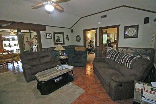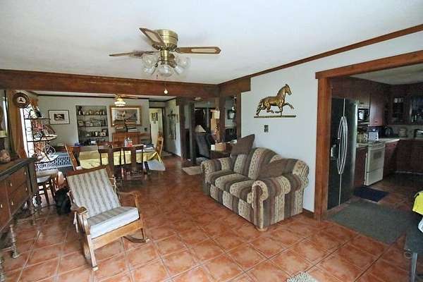 One of a kind charming ranch-style home retreat surrounded by 40+ acres with views to woodlands, horse pastures, abundant wildlife, and natural grass/grazing land. The welcoming covered front porch leads inside to the casual living room and dining room with vaulted ceilings, a wood-burning fireplace that connects to an adjoining, spacious hearth room and sunroom leading out to the covered deck which offers long distance views to the scenic acreage. Three bedrooms, two full sized baths, kitchen and laundry room complete this comfortable main floor living design. A safe, concrete bonus room in the basement offers flexible space to customize for your needs. Mechanical room and additional storage space complete the lower level. There are several sheltered outbuildings to accommodate horses, equipment or hobby interests. Two water wells, a newer septic tank, lateral lines and owned propane tank complete the exterior features. A confirmed approved appointment is required for all showings.