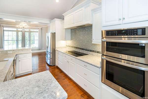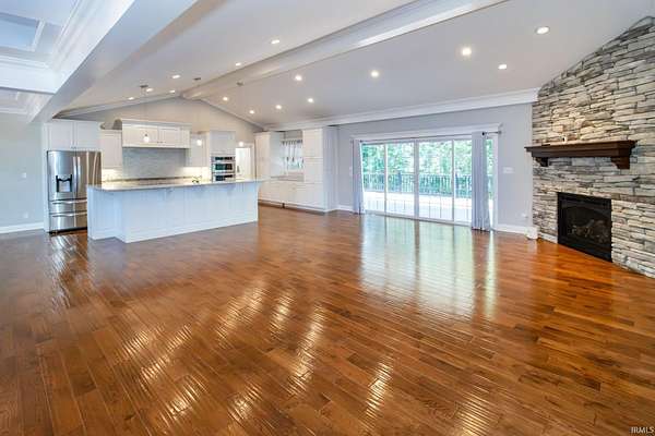 Luxurious 5-Bedroom Home on 1.5 Acres | 1066 Aspen Drive, Vincennes, IN Discover the epitome of upscale living in this remarkable 5-bedroom, 3.5-bathroom home, offering over 5,000 square feet of meticulously designed living space. Nestled on 1.5 acres in a desirable neighborhood, 1066 Aspen Drive combines modern luxury with spacious comfort, making it the perfect home for both relaxation and entertainment. Upon entry, you're welcomed into a grand foyer with soaring ceilings, leading to the expansive great room. The newly installed gas fireplace, featuring a striking stone inlay and remote control operation, creates a warm and inviting atmosphere. The heart of the home, the gourmet kitchen, boasts elegant granite countertops, a new sink, and a custom tile backsplash. Freshly painted cabinetry provides a modern touch, making this kitchen not only functional but also a chef's dream. The master suite serves as a personal sanctuary, with private porch access offering a serene outdoor escape. The en-suite bathroom features luxurious dual vanities and a walk-in shower, providing a spa-like experience in the comfort of your own home. The finished 22x28 basement is perfect for entertaining, featuring a newly renovated wet bar with new cabinetry and a wine/beverage fridge, ideal for hosting gatherings. The basement also includes convenient walk-out access to the backyard, offering seamless indoor-outdoor living for any occasion. The exterior of the home has been thoughtfully enhanced with newly replaced LED light fixtures and a backyard fence for added privacy. A professionally designed landscaping plan was recently implemented in the spring of 2024, and an irrigation system ensures the grounds remain lush and beautiful throughout the seasons. The front sidewalk and back patio have also been sealed, enhancing both durability and curb appeal. In addition to these updates, the home has undergone many other recent elegant improvements that elevate both its aesthetic and functionality, making it a truly modern and sophisticated space. Situated on 1.5 acres, the outdoor spaces provide endless opportunities for leisure and entertainment. Whether enjoying the spacious backyard or relaxing on the porch, this home offers the perfect blend of luxury and nature. With its grand living spaces, updated bathrooms, and custom lighting throughout, 1066 Aspen Drive is a rare opportunity for those seeking elegance, comfort, and modern convenience in a serene setting.