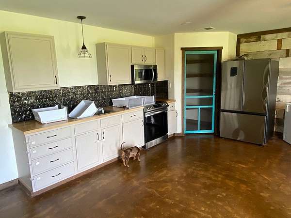 The main house is manufactured housing, 2024 model. It consists of 1,984 square feet. 4 bedroom, 2 bath, walk-in pantry and laundry room. In 2024 construction was completed on the second residence. Approximately 1,000 square feet. 2 bedroom, 1 bath, stained concrete floors and a rustic look throughout the house. Refrigerator and small white freezer do not convey.