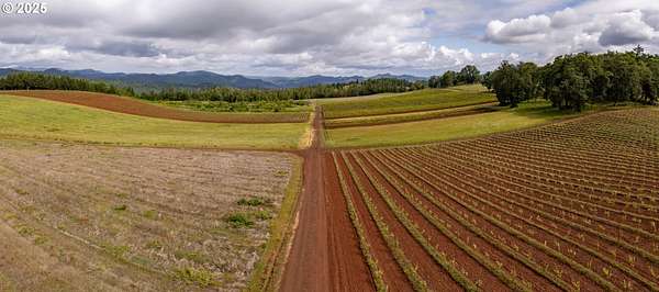 The most eye-catching feature of this sprawling piece of land is also its most unique and valuable attribute-the iron rich, red volcanic soil. It is so singular that this is one of the two vineyards making up the Red Hill Douglas County AVA. Perfectly tucked into the Umpqua Valley the vineyard is not as protected from the Coast Range resulting in cooler growing season and combined with this premier grape growing soil, the wines have amazing structure and character.With over 550 sprawling acres, this land is home to 70+ acres of vines (Pinot Noir, Baco Noir, and Gamay), three total homesites, 145 acres of 28+ year old timber, and 5 buildings including a 3 bed, 1 1/2 bath ranch style home.Water rights to Pollack Creek, numerous springs with registered water rights for domestic or livestock use, the potential to enlarge or create ponds for irrigation (with the appropriate permitting), and a gated and fenced perimeter sets the tract up for all your farming dreams to come true.