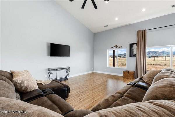 OPEN HOUSE Sat, Jan 24th, 10:00 a.m. - 1:00 a.m., we will love to have you join us!! Great opportunity for a beautiful home priced under market value!! This exquisite custom built home nestled on 2 acres with horse set up. Soaring vaulted ceilings and expansive windows that capture panoramic views by day and breathtaking starry skies by night. Enjoy seamless indoor-outdoor living with spacious front and back patios perfect for relaxing or entertaining. Each bedroom boasts generous large closets, while the kitchen offers a large pantry with coffee bar for all your storage needs. The oversized 3rd-car garage provides even more room for toys or a workshop. Good well at over 4GPM and holding tank! Located near Arizona State Trust Land, it's ideal for horseback riding and off-roading adventures. Close to Lakes, shopping centers, and medical facilities, ensuring both tranquility and convenience. Mummy View Road currently being repaved!!