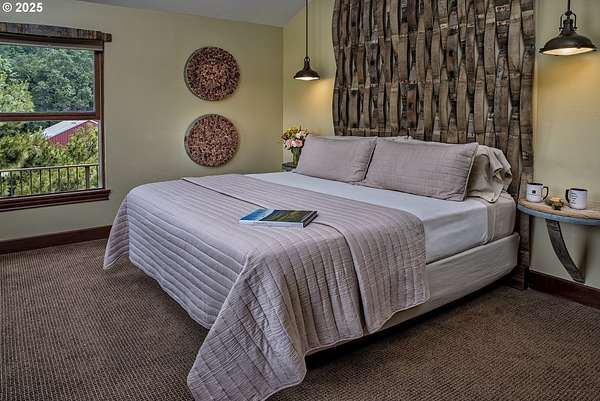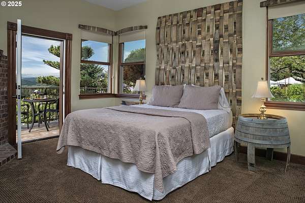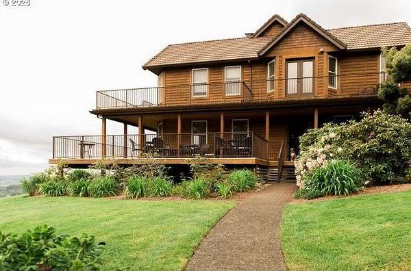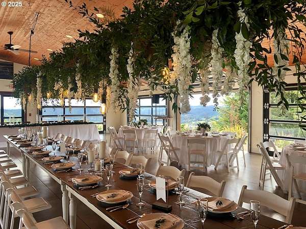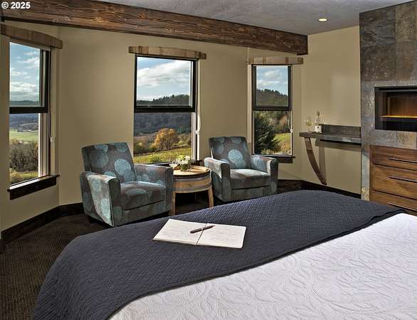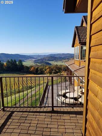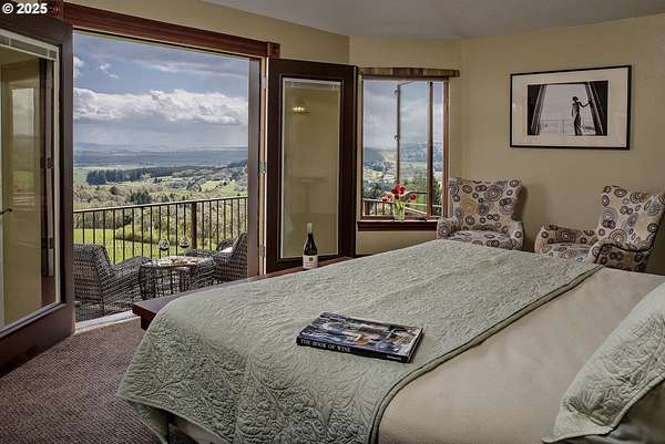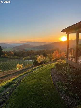 Incredibly rare opportunity to own a profitable 9 room inn, tasting room & event center / wedding venue! Located within the McMinnville AVA, which is experiencing the fastest-growth in the Willamette Valley, this 49.6 acre property features panoramic views of the Cascades & the valley while being conveniently located 15 minutes from downtown McMinnville. Roughly one hour from Portland, many event rental clients & vendors are drawn from the metro area. With nine luxury suites, the property offers a truly rare all-in-one destination for visitors to immerse themselves in Oregon wine county. 23 acres are planted to vineyard with 17.5 additional acres plantable. South / southeast aspect with elevation range of 550'-740'. The soils are deep & well drained from the Steiwer and Willakenzie Series. The property features 19,556 sq. ft. of structural improvements: -9,450 sq. ft. nine suite inn and tasting room, built in 1989 & extensively renovated from 2013-2015. -3,869 sq. ft. event center, built in 2016 and features a large open space with glass roll up doors leading to 2,500 sq. ft. of patio space + catering kitchen, wine barrel storage and a bar. -800 sq. ft. dedicated restroom building for events, with 4 single bathrooms + a storage room with garage door. -2,370 sq. ft. manufactured home w/ 871 sq ft. attached garage, 4 bed, 3 bath, built in 2007. -2,196 sq ft. 36'x61' barn for equipment storage. -Ample guest parking with a large overflow gravel lot. Secured water rights, which are increasingly rare, ensures reliable access for vineyard & frost protection, making Youngberg Hill stand out in a market where water availability is tightly restricted. This is a rare opportunity to expand on a beautifully built & well maintained hospitality property. is a proven destination property offering the next owner the opportunity to continue the legacy, establish a home for an existing brand or launch a new venture within the dynamic Oregon wine community.
