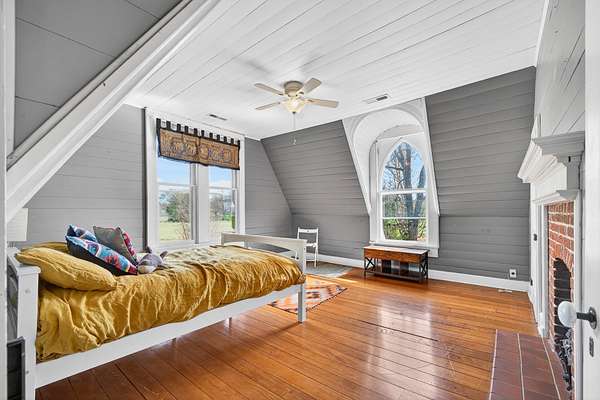 Countryside Living in Henry County, TennesseeThis beautifully maintained Victorian farmhouse offers the perfect blend of historic charm and peaceful countryside living. Set on 4.352 acres just minutes from town, the three- to four-bedroom home showcases original craftsmanship with soaring ceilings, abundant natural light, and large, ornate windows that frame expansive farmland views. Hardwood floors run throughout the home, while a graceful solid wood winding staircase and artistic woodwork details create an inviting atmosphere full of character and warmth.The main floor features three fireplaces—including gas log fireplaces in both the sitting room and the primary bedroom—a formal dining room, and a spacious kitchen complete with an island and eating bar. In the living room, a comfortable window seat and built-in bookshelves provide cozy spaces for relaxation, while a custom desk tucked beneath the winding staircase offers a charming nook for work or correspondence. A basement storm shelter adds practical peace of mind, and every room reflects quality construction and thoughtful design.The expansive grounds offer flexibility for a variety of lifestyles and interests. Apple and fruit trees, mature shade trees, and a chicken coop enhance the pastoral setting, while a children’s playhouse adds to the property’s charm. There is ample space for gardening, livestock, or simply enjoying the peaceful surroundings and natural landscape. Screened front and rear porches with bench swings provide ideal retreat spaces, and the fenced backyard ensures privacy and security.A 32' x 20' detached outbuilding further maximizes the property’s potential. The 16' x 20' art studio features climate control with ductless heating and air conditioning, running water, a sink, and abundant windows overlooking the farmland, along with glass sliding doors for seamless indoor-outdoor flow. The workshop side includes concrete floors, a roll-up door, and passage access, making it perfect for projects, hobbies, or storage. This versatile layout is ideal for artists, writers, yoga instructors, or those considering a boutique bed-and-breakfast operation.