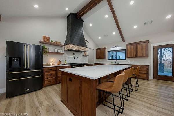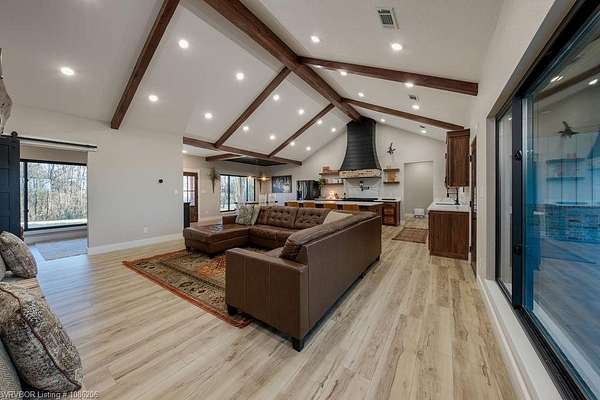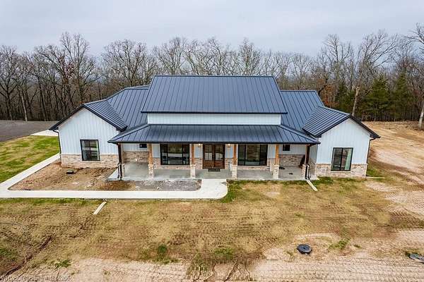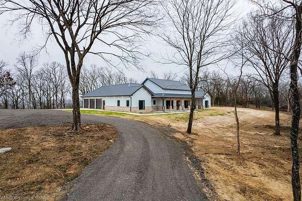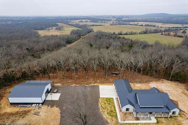 Location, Location, Location - Stunning New Construction on 40 Acres! Welcome to this gorgeous new-construction home nestled on 40 peaceful acres in a rural setting just outside of Sallisaw. Step inside to an inviting open-concept living space featuring a cozy gas fireplace, gourmet kitchen, and spacious dining area-perfect for entertaining or everyday living. Light-painted walls, a striking wood-stained ceiling, and sleek black finishes beautifully complement the Black Walnut cabinetry throughout the home. This thoughtfully designed residence offers 4 bedrooms, 3.5 bathrooms, and 2,465 square feet of living space, with 4,217 square feet under roof. Additional highlights include a three-car garage, ZLINE appliances, buried propane tanks, and a Generac whole-home generator for comfort and efficiency year-round. Outside, you'll find a 40x50 shop on a slab with electric, along with a safe room, providing both functionality and peace of mind. Enjoy the best of country living with the convenience of town nearby-Sallisaw is just minutes away, outdoor activities like hiking and fishing are only a few miles from your doorstep, and Interstate 40 is just over a mile away, offering easy access wherever life takes you. (5 acre option available MLS #1086227) Call your favorite Realtor today to schedule your private showing!