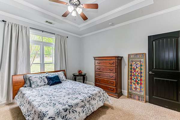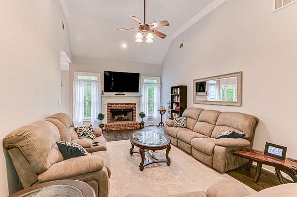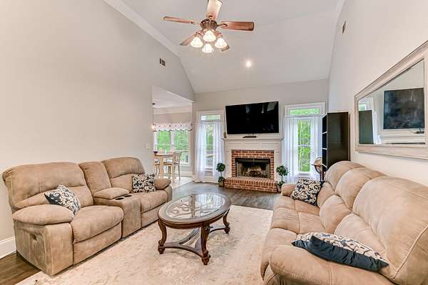 FRESHLY PAINTED INSIDE AND OUT!!!! THIS WONDERFUL 2 ACRE LOT HOME HAS A BASMENT AND IS WALKING DISTANCE TO THE LAKE!!! Beautiful 2 story home in the desirable Providence Ferry neighborhood. Secluded, wooded lot. This 4 bed/3 bath home features hardwood floors, tray ceilings, a brick fireplace in the great room, 3 spacious bedrooms and 2 baths upstairs, and 1 bedroom, WITH BONUS ROOM and one bath downstairs. From the kitchen/breakfast room, walk out onto a deck overlooking nature. A covered patio with swing can be accessed from the upper deck or from the 4th bedroom downstairs. There is an extra garage in the basement that is closed in that would make a wonderful rec room or fitness center. Tons of storage - 3 rooms downstairs can be used for this. There is a community dock for owners to use.