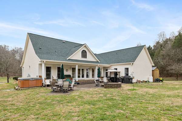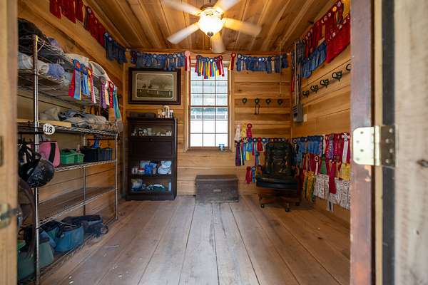 This charming farmhouse features ample natural light, cozy living spaces, and room for family gatherings, making it the perfect retreat after a long day outdoors. Horse lovers will be in paradise with 19 spacious stalls ready for your prized equine companions. The 14 board-fenced paddocks offer secure and comfortable spaces for your horses to roam. Unleash your training potential in the large, professionally built arena and round pen. Embrace the beauty of nature with miles of park-like groomed riding trails that wind through the property, providing endless opportunities for conditioning and adventure. Discover a serene stocked pond complete with a floating dock perfect for fishing or simply enjoying a peaceful afternoon. The all-weather creek adds a soothing element to the natural landscape. There are also two RV hookups for guests to enjoy. With multiple contiguous lots, this property has the potential for expansion, allowing you to add up to 4 additional houses. Whether you're considering a family compound, a retreat center, or an investment opportunity, the possibilities are endless.