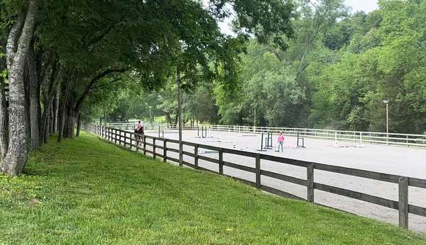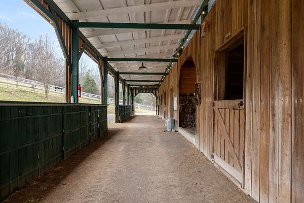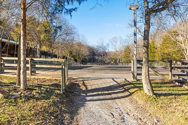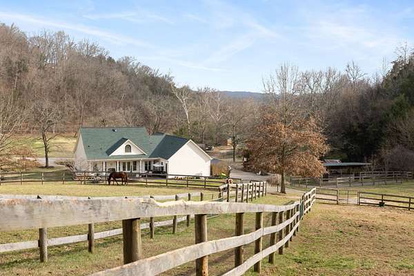 This charming home features ample natural light, cozy living spaces, and room for family gatherings, making it the perfect retreat after a long day outdoors. Horse lovers will be in paradise with 2 main barns having 6 stalls each, plus three separate small barns with 2 stalls each, featuring attached run-ins, ready to safely welcome your prized equine companions. The 14 board-fenced paddocks, complete with curved corners for safety, offer secure and comfortable spaces for your horses to roam. Unleash your training potential in the large 250' professionally built arena with lighting, a 60' round pen, and even a gallop track. Embrace the beauty of nature with miles of park-like groomed riding trails that wind through the property, providing endless opportunities for conditioning and adventure. Discover a serene stocked pond complete with a floating dock perfect for fishing or simply enjoying a peaceful afternoon. The all-weather creek adds a soothing element to the natural landscape. There are also two RV hookups for guests to enjoy. With multiple contiguous lots, this property has the potential for expansion, allowing you to add up to 4 additional houses. Whether you're considering a professional equine facility, family compound, retreat center, or an investment opportunity, the possibilities are endless.