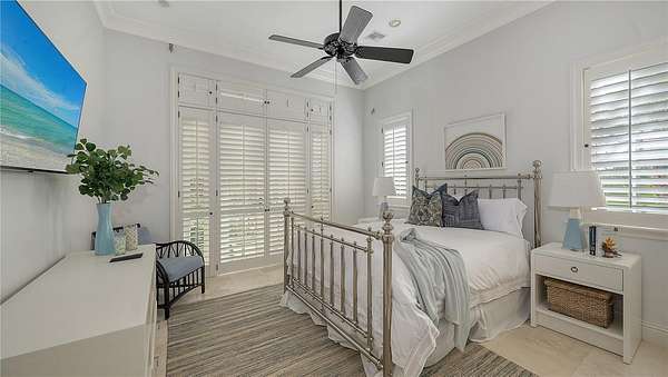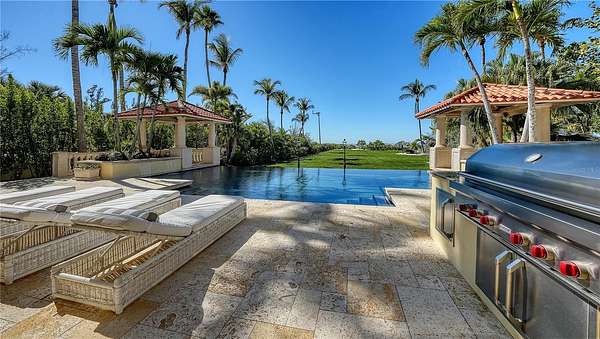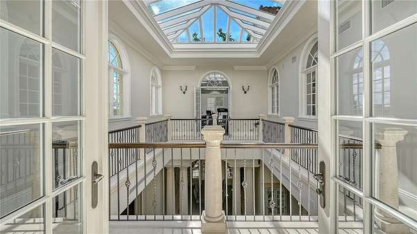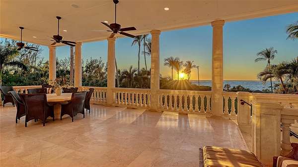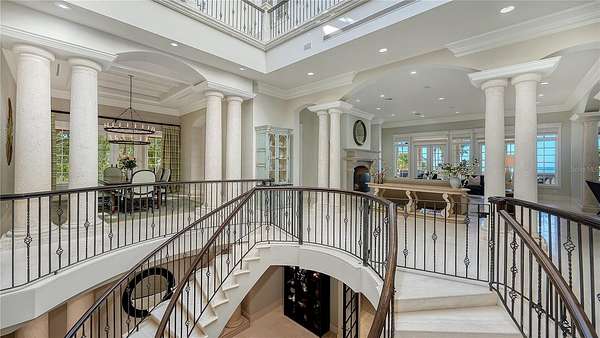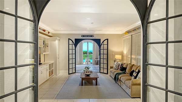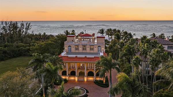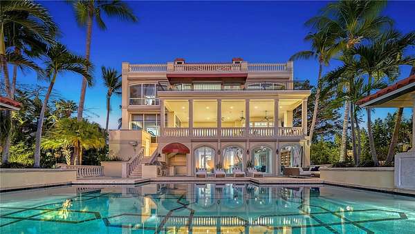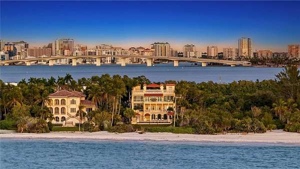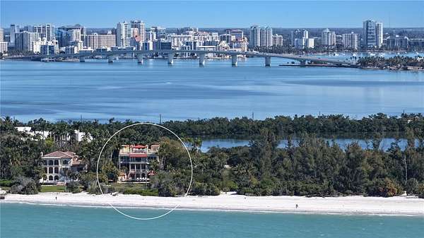Designed to embrace its extraordinary setting, the residence unfolds with light-filled interiors, grand architectural moments and uninterrupted turquoise Gulf views from nearly every living space. A dramatic atrium entry and marble staircase lead to expansive rooms where soaring ceilings, bespoke detailing and walls of glass blur the line between indoors and out. The welcoming great room opens effortlessly into an expansive beachfront terrace - offering front-row views of endless sunsets over the Gulf of Mexico. The home is equally suited for elegant entertaining and relaxed coastal living, featuring a sophisticated bar and lounge with a custom glass wine room, a gourmet chef's kitchen with premium appliances and multiple dining spaces outlined by panoramic water views. Savor resort-style outdoor living - and soak up the sun with unlimited boating, water sports and beachcombing. Experience the lush, tropical landscaping, infinity-edge pool overlooking the Gulf, and multiple rooftop terraces - culminating in a spectacular rooftop entertaining level with sweeping sunrise-to-sunset vistas spanning Sarasota Bay, downtown and the Gulf beyond. The primary suite is a dedicated sanctuary with its own beach-front terrace, spa-inspired bath, boutique-style dressing room and fitness space. Artfully designed for both the owner's privacy as well as those who visit - the five guest suites are thoughtfully appointed as intimate retreats. And while famous St. Armands's Circle and vibrant downtown Sarasota is merely minutes away for dining and shopping - there's no need to leave the grounds when you have a private theater, 2 executive offices, fitness room, family and game rooms, bunk room and multiple rooftop decks for lounging and entertaining.
