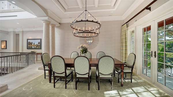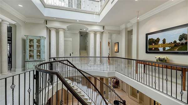 - Built-In Features, Ceiling Fans(s), Central Vaccum, Coffered Ceiling(s), Crown Molding, Eat-In Kitchen, Elevator, High Ceilings, Primary Bedroom Upstairs, Solid Wood Cabinets, Split Bedroom, Stone Counters, Tray Ceiling(s), Walk-In Closet(s), Wet Bar, Window Treatments