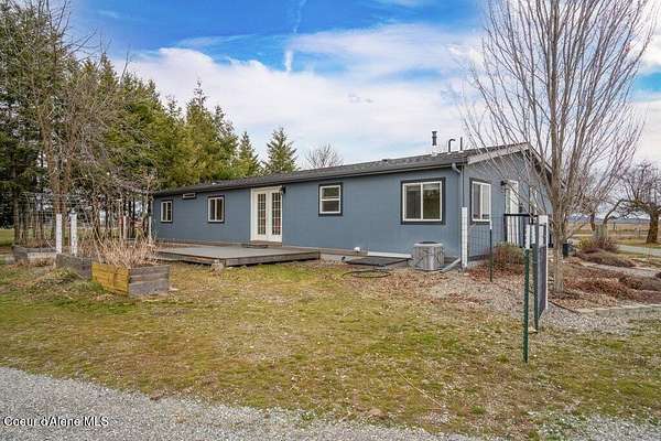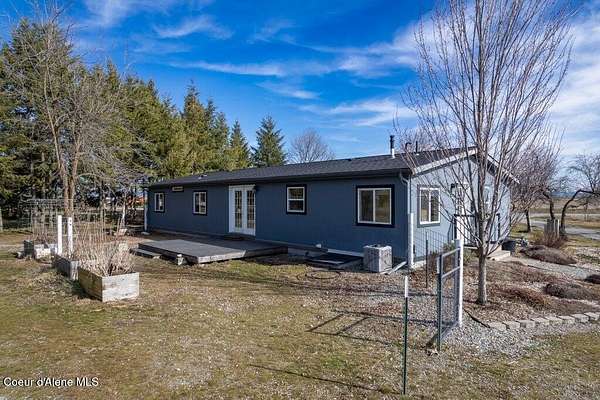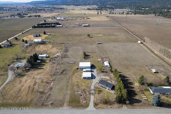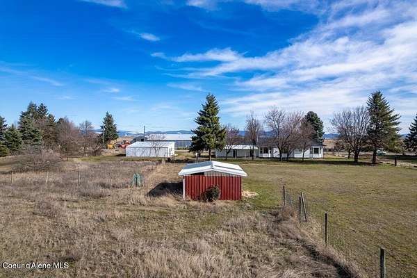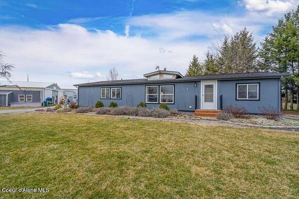 Wide-open space & breathtaking prairie sunsets from this 4 bedroom, 2 bath manufactured home (4th bedroom is currently set up as an office), built in 2011 and featuring a newer roof. PLUS separate living unit! Located on the highly desirable Post Falls prairie, adjacent to working farms, this property offers nearly 5 usable acres w/ panoramic mountain views and peaceful rural surroundings, all easily accessible by publicly maintained roads & alley access. The land is exceptionally well set up for country living, hobby farming, or homesteading. Enjoy large organic gardens, no-till soil, wood-chip gardening beds, 12 medicinal herbs, fruit trees, covered growing areas, and a heated plant room w/ 50-amp power and a 60k BTU furnace. Irrigation water from East Greenacres Water (just $148/year) supports the fertile land, and irrigation pipes - included. Frontend loader, backhoe, zero turn lawnmower, garden equipment, air compressors, welder, freezer, & lawn equipment- negotiable Outbuildings make this property truly special. The impressive 40x60 shop includes an appx 700 sq ft 1-bedroom secondary non-conforming "guest house", including large living rooms, kitchen, bathroom, and laundry room, plus an adjacent heated recreation room with double-wall insulation and a 12k BTU mini split, ideal for entertaining, hobbies, or indoor recreation. The shop area offers drive-through access with 14' high, 10' wide doors, perfect for equipment, RVs, or large projects. There's also a 13x26 detached heated garage, a 40x21 barn with 3 stalls, a 36x8 stable with horse stalls, fenced pasture areas, and multiple storage options. Animal lovers will appreciate the chicken coop with protected "chicken tunnel", plus additional coop space in the barn for easy rotation and garden patrol. Even more value is included with the sale irrigation equipment and a 40' flatbed trailer making this a turnkey setup for your rural lifestyle. Centrally located yet surrounded by open farmland, this is a rare opportunity to own a fully equipped prairie property in the heart of Post Falls. Space, function, views, and versatility all come together here. Sellers have included MUCH more information- see documents in MLS. Buyer to verify all details to satisfy.