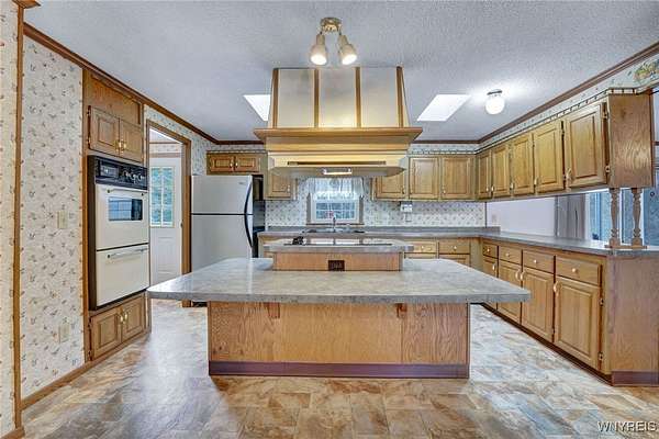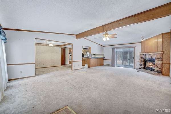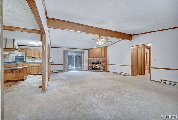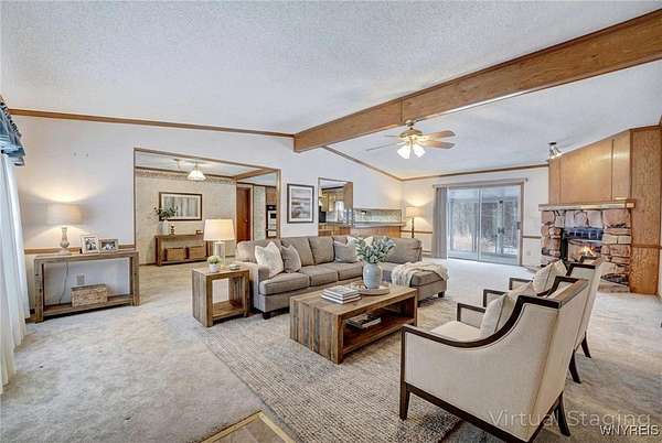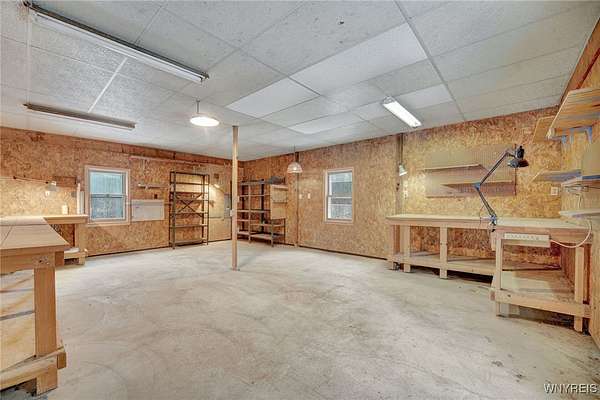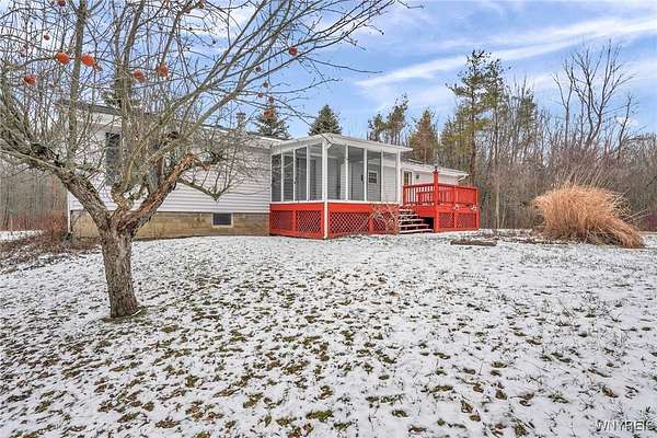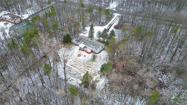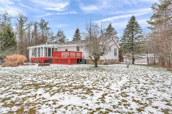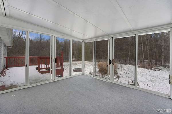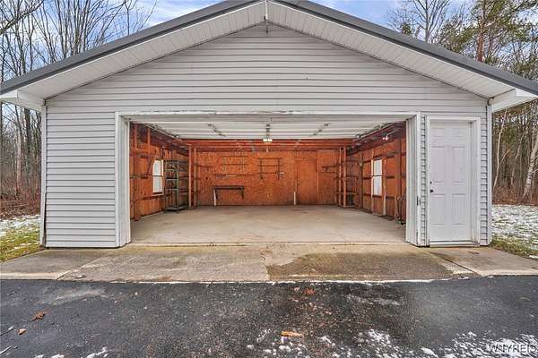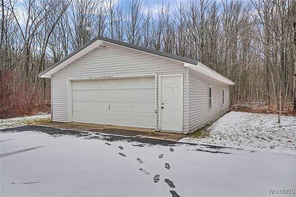 Welcome to 10675 Darien Townline Rd. Nestled on more than five acres of serene, wooded privacy, this inviting 3-bedroom, 2-bath ranch blends comfort, functionality, and the peaceful beauty of nature. The black top drive welcomes you home, setting the tone for the quiet retreat that awaits. Step inside to discover a warm and thoughtfully designed layout, enhanced by a newer furnace and central air conditioning for year-round comfort. The heart of the home flows effortlessly from the spacious living area with a beautiful gas fireplace to a bright, airy three-seasons room, offering panoramic views of the surrounding forest-perfect for morning coffee, evening relaxation, or simply soaking in the tranquility of your own private haven. A Large eat in kitchen offers lots of space for the one that enjoys cooking and an abundance of storage. Enjoy 2 bedroom and 1 bathroom at one end of the home, and privacy with a primary suite at the other end with a study adjoined. For hobbyists, craftsmen, or anyone needing extra space, the property features an impressive 2.5-car garage complete with an attached workshop. Whether you're restoring a classic car, tackling weekend projects, or dreaming up your next creation, this space is ready to support your passions. Outdoors, the expansive acreage provides endless possibilities-gardens, trails, recreation, or simply the luxury of unmatched seclusion. Wildlife, whispering trees, and open sky create a setting that feels worlds away while still offering the convenience of single-floor living. A rare opportunity to own a private retreat with abundant space, and the peaceful lifestyle only a wooded estate can offer.