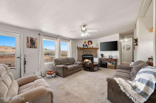 Welcome to your slice of Arizona serenity! Nestled in the scenic Dewey foothills, this spacious 3-bedroom, 2-bath manufactured home offers 1,526 sq ft of comfortable living on an expansive 1.73-acre lot. With wide open skies, rolling hills, and room to breathe, this property is perfect for those craving space, privacy, and a connection to nature.Step inside to a bright, open floor plan with generous living space, a well-appointed kitchen, and a split-bedroom layout for added privacy. Enjoy peaceful mornings and glowing sunsets from your front porch or back patio--this is country living at its best.The home is serviced by a private well and includes a detached 2-car garage, ideal for your vehicles, workshop, or extra storage. Whether you're looking to garden, raise animals, or simply escape the city, there's plenty of room here to make your dreams a reality.No HOA, no hassles--just pure Arizona charm. Come experience life in the Dewey foothills and see why so many are choosing wide-open spaces and peaceful living.