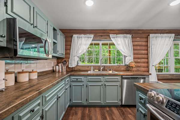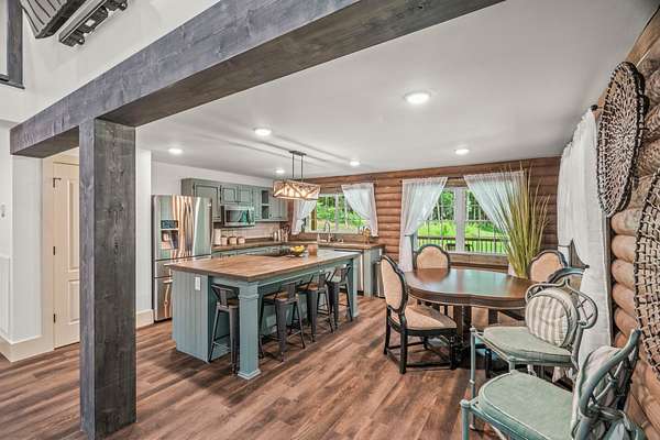 Welcome to this gorgeous log cabin nestled in the woods - almost 8 acres! With the perfect mixture of rustic and modern finishes, it could be your dream home, weekend getaway, or investment rental as Airbnb. It's newly built with many custom features - handmade butcher block counter tops, walk in tile shower, LVP flooring, nooks and crannies with digital locks for owner's access only. Enjoy the 1000 sq ft wrap around porch to watch wildlife and sip your coffee. Crawlspace is encapsulated with dehumidifier. The back corner of the porch is ready for you to add a hot tub with the added support/framing to carry the load! Furnishings can be sold with home so your rental is set up and ready to go! Buyer/Buyer's agent to confirm all info. Property taxes to be determined. Please do not enter driveway without a showing approval!