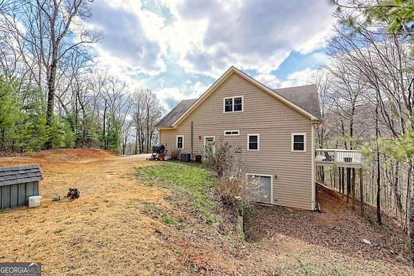 Welcome to your dream home in the highly sought-after Persimmon area of Northeast Georgia! This stunning 5-bedroom and 3 bath home offers the perfect blend of space, comfort, and nature, all nestled on nearly 7 acres that border the National Forest. Built by local builder David Ramey, this home boasts quality craftsmanship and thoughtful design. The property itself is a true retreat, featuring a babbling creek, wooded acreage, and a small pasture area that could easily serve as a mini farm. Step inside to find spacious bedrooms and modern bathrooms. Two of the bedrooms could easily be converted into a two car garage if desired. The inviting living room features a cozy fireplace, perfect for chilly mountain evenings. The third floor offers an expansive open space, along with two additional bedrooms and a bath, making it ideal for hosting guests or creating a private retreat. The finished terrace level includes a large workshop and a versatile bonus space-perfect for a media room, home office, gym, or man cave. Additional highlights include spray foam insulation throughout and whole-house generator WIRING, ensuring year-round efficiency and comfort. Outside, a large deck invites you to entertain or unwind while soaking in the breathtaking natural surroundings. With ample storage, a thoughtfully designed layout, and unbeatable privacy, this home is the ultimate mountain getaway. Don't miss your opportunity to own this extraordinary retreat-schedule your showing today!