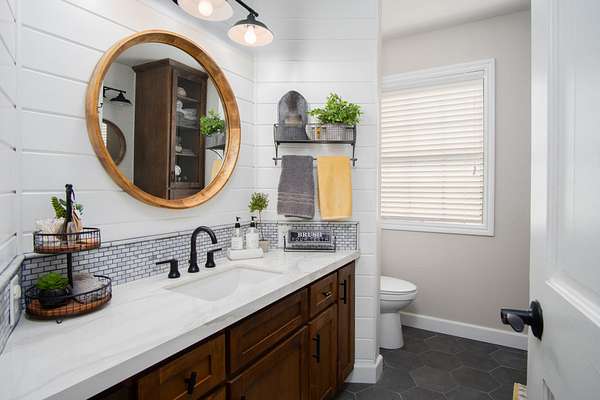 - Brick Walls, Ceiling Fan(s), Pantry, Sunken Living Room, Tile Counters