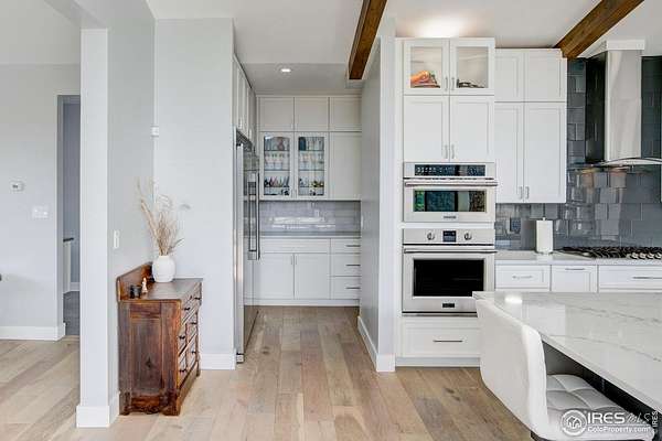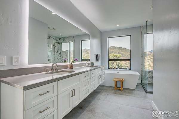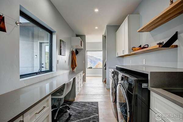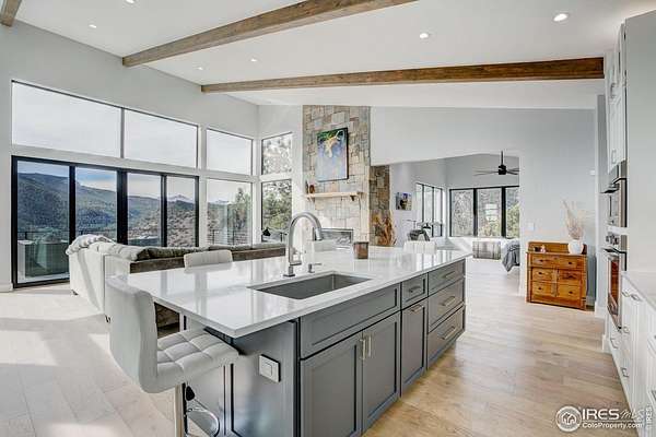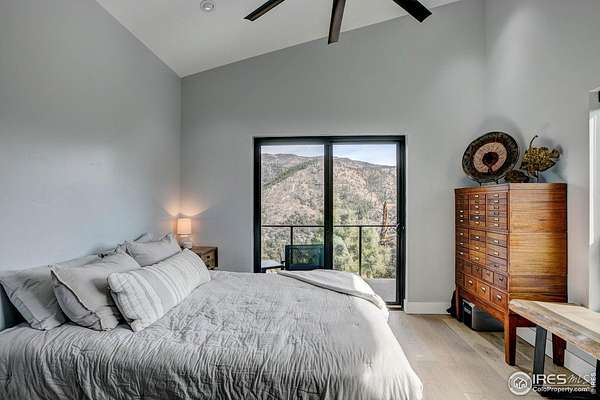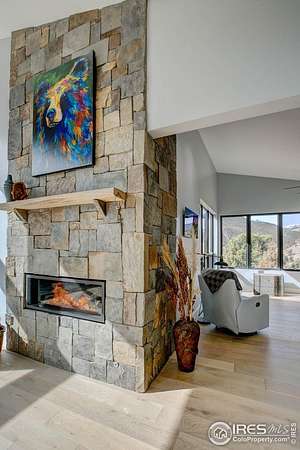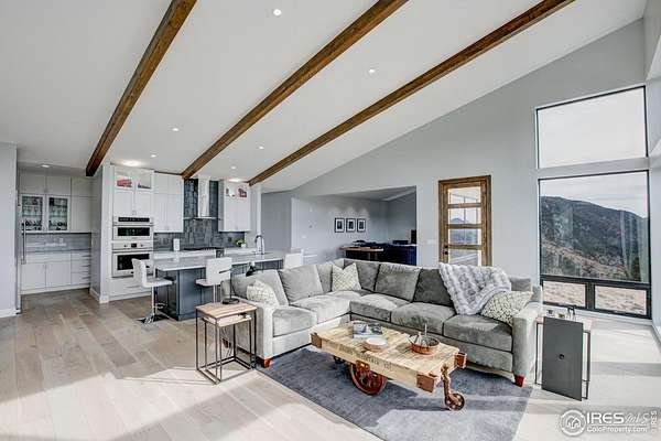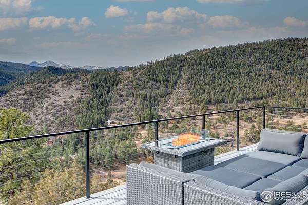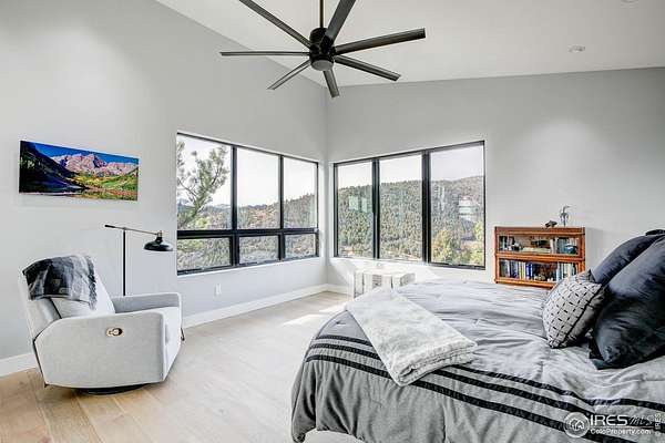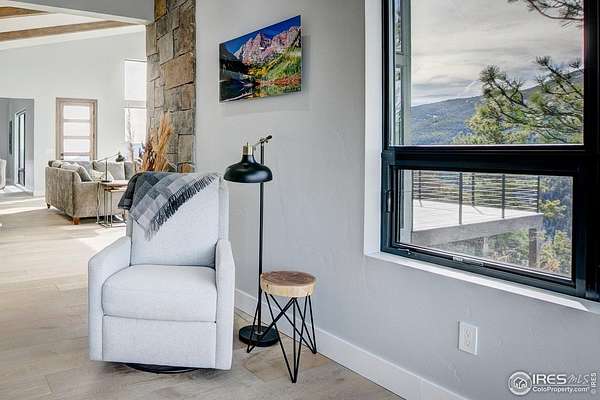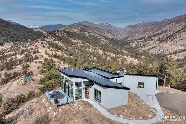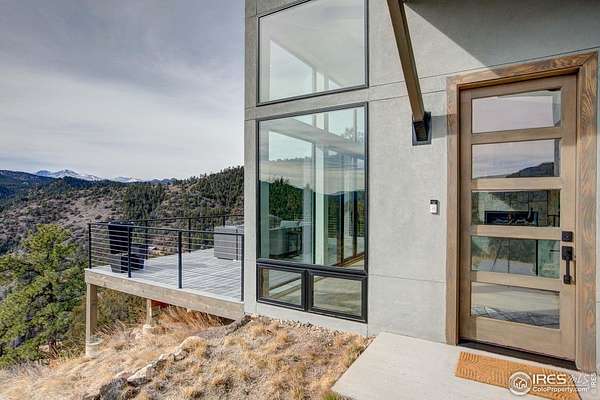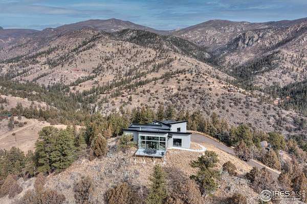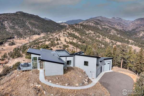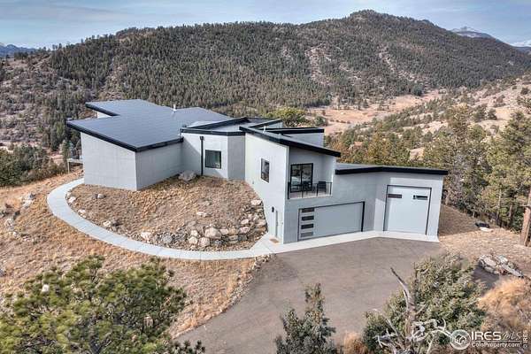 Modern Mountain Masterpiece 1068 Elkridge Drive. Perched on a private 6-acre lot in Glen Haven, this exceptional contemporary retreat offers a rare blend of luxury, sustainability, and breathtaking natural beauty. Designed to frame panoramic views of Longs Peak and Rocky Mountain National Park, this architectural gem is a true sanctuary in the mountains. Step inside to a light-filled open floor plan featuring soaring 16-foot ceilings with rustic wood beams and elegant White Oak hardwood floors. Expansive south-facing windows maximize passive solar efficiency, providing natural warmth in winter and cool comfort in summer. Floor-to-ceiling Pella windows showcase 360 sweeping views of rugged rock outcroppings, ancient pines, and surrounding peaks. Outdoor living is equally impressive with a spacious front deck, private rear patio with spa, and a balcony off the guest suite-perfect for relaxation and entertaining. The chef's kitchen offers luxury cabinetry, quartz countertops, premium appliances, and a large butler's pantry. The primary suite includes a generous walk-in closet with custom built-ins, while spa-inspired bathrooms feature custom tile and high-end fixtures. A dedicated laundry room with built-in workspace and energy-efficient LED lighting enhance everyday living. Superior mechanical systems include a 5-zone radiant heating system and tankless water heater. The impressive 4-car heated garage features an RV-height door, workshop space, and abundant attic storage. Additional highlights include a paved parking pad, advanced water treatment system, exterior stucco finish and low-maintenance natural landscaping. Located minutes from Roosevelt National Forest and Rocky Mountain National Park trailheads, this remarkable property offers unmatched access to Colorado's wilderness while delivering modern luxury and comfort. Situated in the quiet community of Glen Haven Colorado, 15 minutes from Estes Park and Rocky Mountain National Park