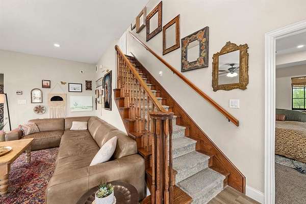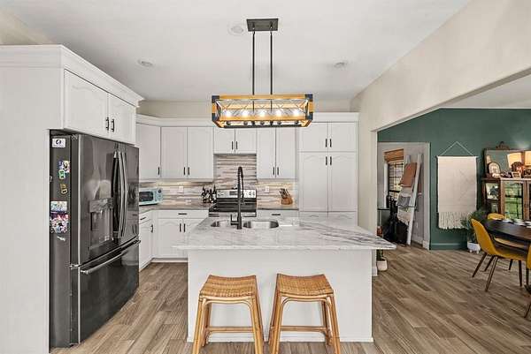 - Chandelier, Decorative Lighting, Eat-In Kitchen, Flat Screen Wiring, In-Law Suite Floorplan, Kitchen Island, Loft, Multiple Staircases