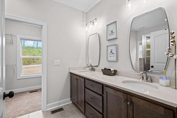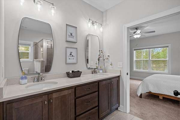 - Ceiling Fan(s), Ceiling-Cathedral, Double Vanities, Laundry Room, Master On Main Level, Shower Only, Smoke Detector(s), Walk-In Closet(s)