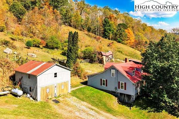Enjoy the beautiful countryside of western Watauga County from this farmstead property offering 9.75 acres, a 3BR/1.5BA, 1730sq.ft. Farmhouse with full basement and multiple outbuildings including a large barn with hay loft, detached 2-car garage workshop with a second story which could be used for storage, studio space, etc. Other property features include easy access via state maintained paved road frontage, a bold stream, springs, fiber optic services, multiple home sites, ample gardening space and plenty of room for horses/livestock on the mixture of open pasture and wooded acreage. Main level of home offers wood floors throughout with the primary bedroom suite, kitchen with newer stainless-steel appliances, living room with wood burning fireplace and an additional half bath. Second level of home offers 2 additional bedrooms and an office/storage area. The full unfinished basement offers the laundry area along with a shower, toilet, and sink. This property offers great potential for many different uses and is conveniently located less than 15-20 minutes from Boone and AppState!