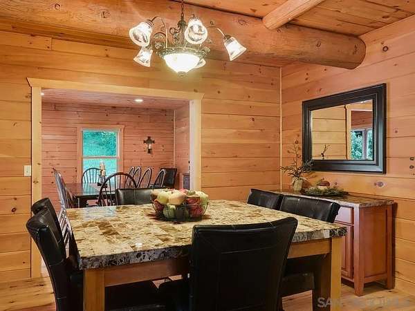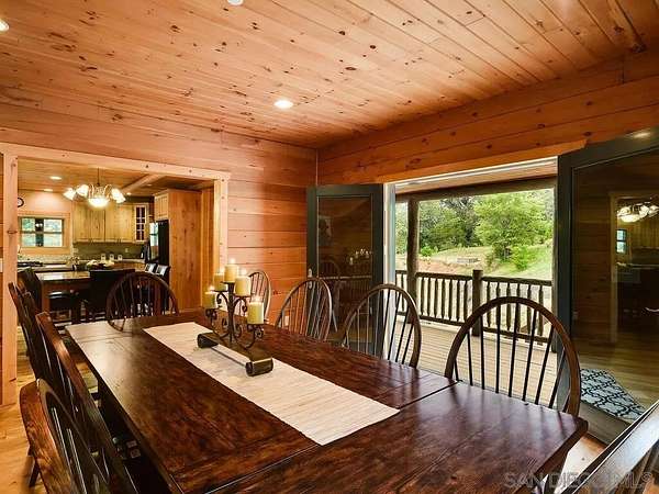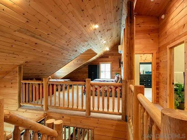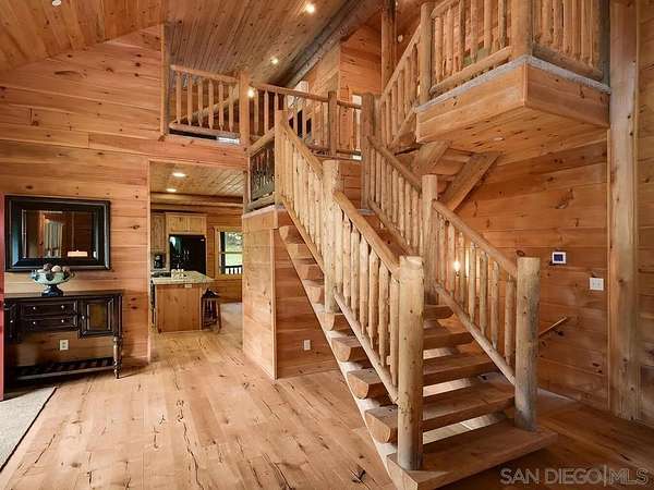 Welcome to Mountain Majesty, a luxurious log home nestled in the private, gated community of Julian Estates. Built in 2007 and thoughtfully enhanced by its current owners, this custom-crafted retreat offers timeless mountain charm, elegant craftsmanship, and quality finishes throughout. Set on a gently sloping, tree-lined lot, the home is surrounded by natural beauty and privacy. A spacious wrap-around deck welcomes you outdoors to enjoy fresh mountain air, forest views, and year-round entertaining. Custom stone veneer detailing surrounds the lower entry, pillars, stairwell, built-in BBQ area, and lower patio, adding texture and character to every corner. Inside, the home features 3 bedrooms, 3.5 bathrooms, a cozy loft, and a bonus room that's ideal as a media room, game room, studio, or guest suite. The interior showcases vaulted wood ceilings, richly grained paneling, and finely crafted woodwork throughout. "Continue in Supplement"