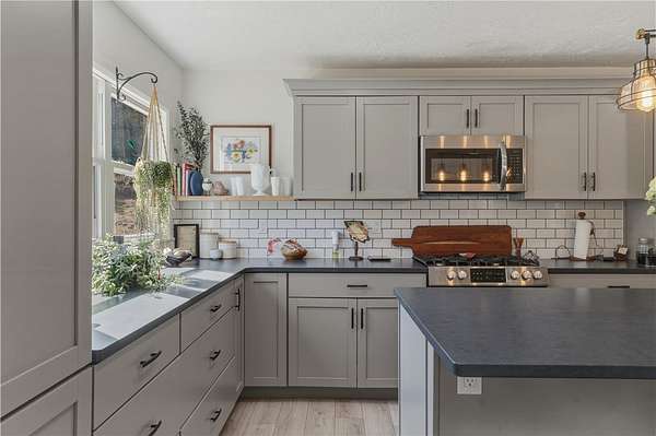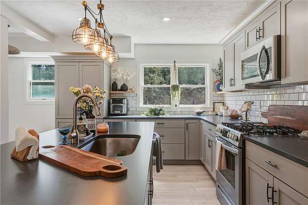 - Cathedral Ceilings, Ceiling Fans, Granite Counters, Kitchen Island, Living Dining Room, Separate Formal Living Room, Skylights