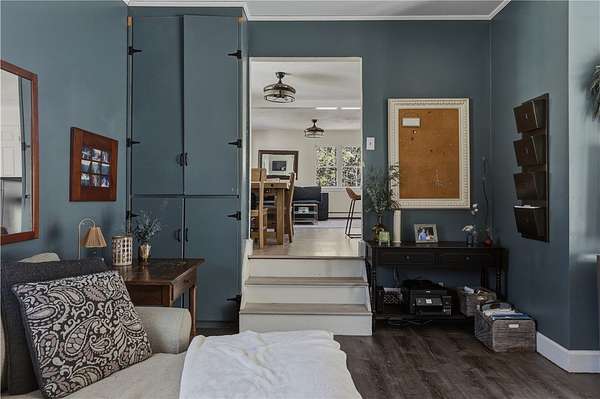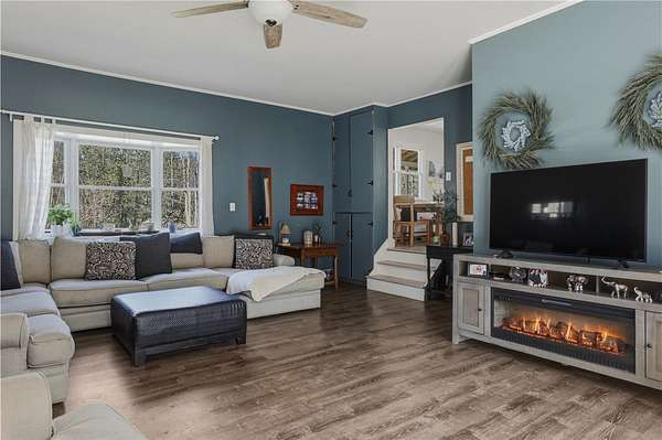 This is a unique home, situated on 4+ acres of private land, just minutes from downtown Corning. The house features a new kitchen with stainless appliances, granite counters, a butler's pantry and a dining area. The floorplan is open and the kitchen flows right into the living room on one side and the great room on the other. The living room is cozy and offers a great place to hang out and still be talking with people in the kitchen or dining area. It's a great setup for entertaining. There is a great room, that was recently added, that offers space for the TV, more entertaining, or even that pool table you've always wanted. When the new addition was built, it added an over-sized two-car garage and, more importantly, an owners suite up above. This includes a large bedroom, with his and hers closets, and a balcony to enjoy your morning coffee. And it added a spacious bathroom and a separate laundry room. This room is really an oasis away from the rest of the house giving you room to relax and escape. There is a French slider door from the great room, leading to the back yard, or your future deck or patio. The yard is large and there are two sheds and plenty of parking. If you've been looking for that country get-away while enjoying a close proximity to town, this may be just the right place to call home.