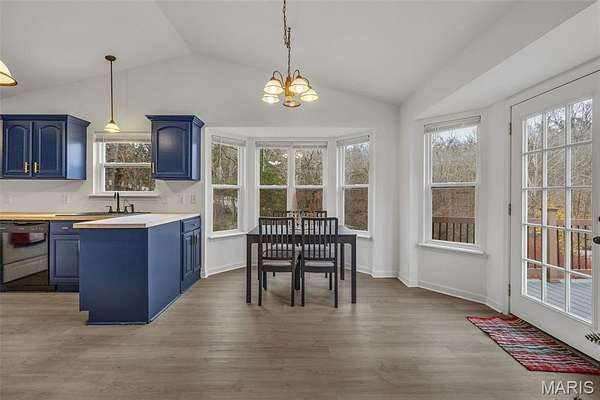 - Breakfast Bar, Custom Cabinetry, Eat-In Kitchen, Entrance Foyer, Kitchen/Dining Room Combo, Open Floorplan, Vaulted Ceiling(s)