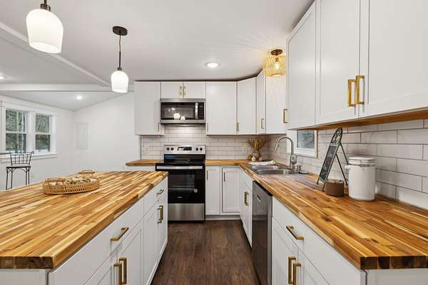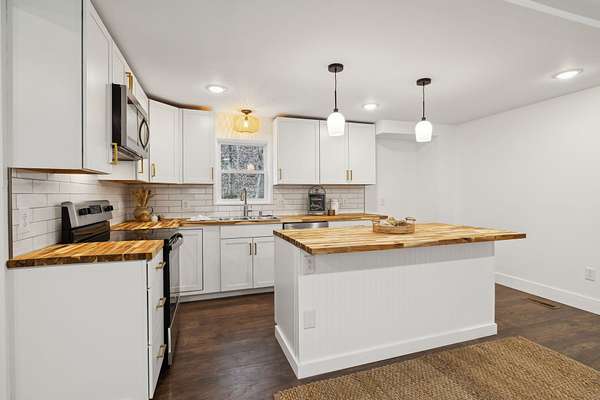 This amazing remodel has spared no expense in design. How often is a 3BR 3.5BA 1824 sq ft. home offered in today's market at this price. This is a "foundation to roof" remodel which includes roof, custom windows, new baths, custom kitchen, new HVAC, new flooring, custom front porch with structural porch beams and many other items too numerous to mention. Primary bedroom suite is privately located, has his and her closets, exterior exit to rear deck, vaulted ceilings, beautiful customized bathroom and additional half bath. Main level living space is open concept, classic white kitchen with butcher block countertops and large island with butcher block top offering a natural feel to this space. The main level also includes a second spacious bedroom with a private full bath. Second story space features a 3rd bedroom with private full bath as well. The designer has chosen a crisp white pallet through out home. This color creates a clean and airy atmosphere, making the space feel larger and creates a natural feel in every corner of this home. This home sits on 5.86 acres of land surrounded by woods and nature's beauty. Property is located close to recreational areas, convenient to small town necessities yet still offering a sense of privacy. This home is a must see and we would love you give you a private tour. Call us today or notify your agent, you will be glad you did.