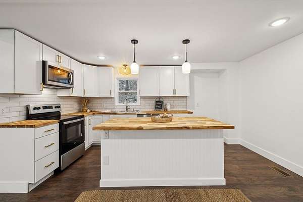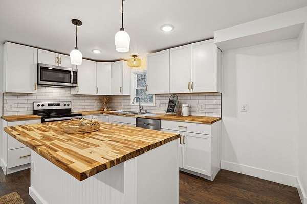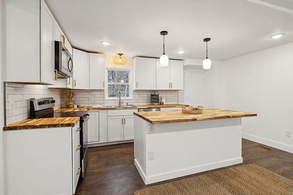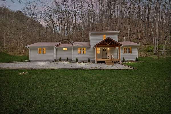 This amazing remodel has spared no expense in design. This is a "foundation to roof" remodel including roof, windows, new baths, custom kitchen, new HVAC, new flooring, custom front porch with structural porch beams & many other items too numerous to mention. Primary bedroom suite is privately located, has his/her closets, exterior exit to rear deck, vaulted ceilings, customized bathroom & additional half bath. Main level living space is open concept, classic white kitchen w/butcher block countertops & large island w/butcher block top offering a natural feel. The main level also includes a 2nd spacious bedroom w/private full bath. 2nd story features a 3rd bedroom w/private full bath as well. The designer has chosen a crisp white pallet through out home. This color creates a clean and airy atmosphere, making the space feel larger & creates a natural feel in every corner. Home sits on 5.86 acres surrounded by woods and nature's beauty. Home is a must see. Call today!