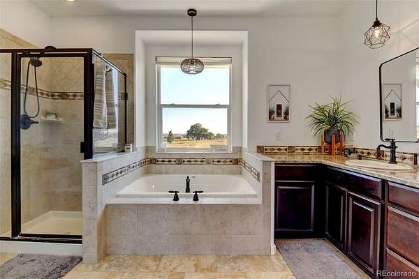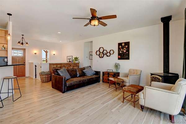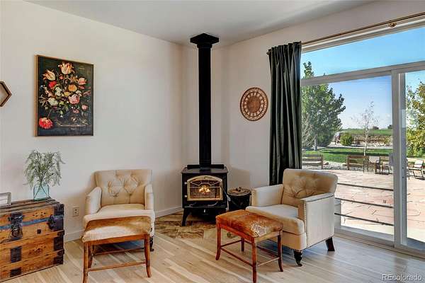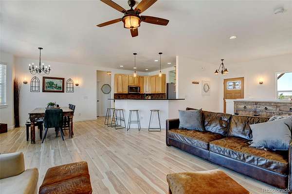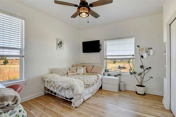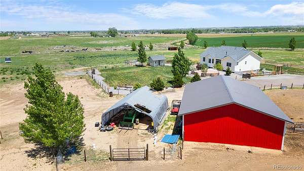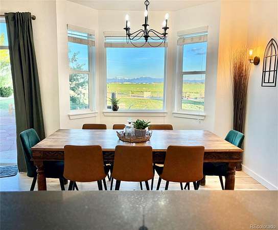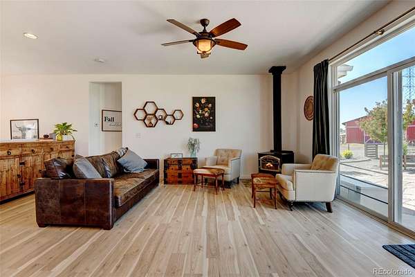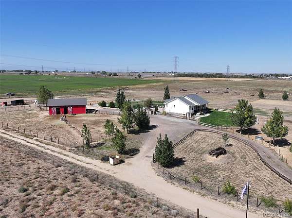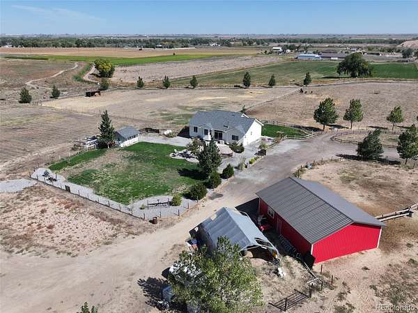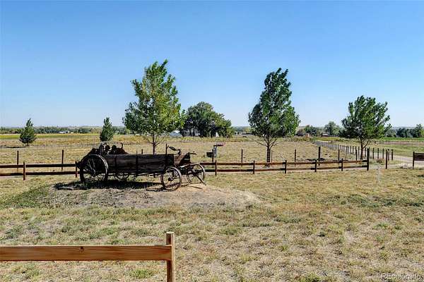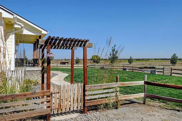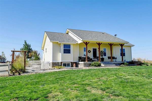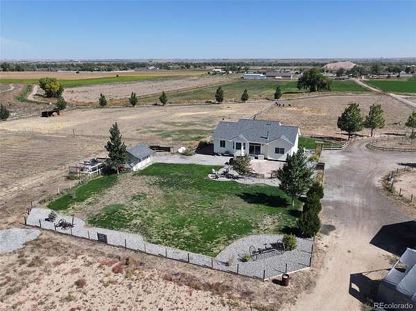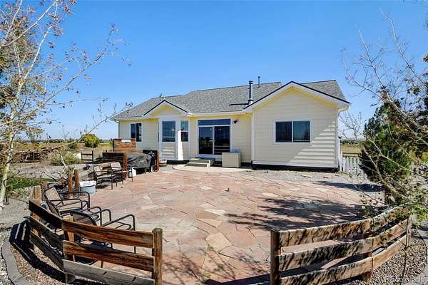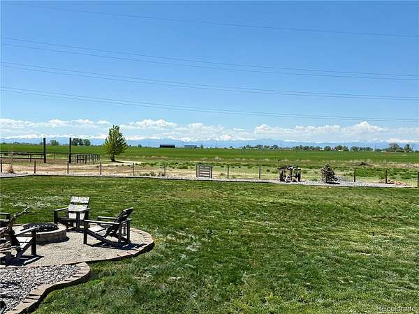 Custom ranch home on 9.66 acres with breathtaking mountain views and room to roam. Calling all hobby farmers, homesteaders, and animal lovers—this property offers the space, functionality, and peaceful country lifestyle you’ve been searching for. Enjoy stunning sunrises and sunsets, fresh air, and privacy that’s hard to find. This 5-bedroom, 3-bathroom home features an open-concept kitchen, dining, and living area ideal for entertaining, plus a cozy wood-burning stove for Colorado evenings. The spacious primary suite includes a 5-piece bath, dual closets, and a jetted tub. The finished basement with 9-foot ceilings provides flexible space for a media room, gym, or hobby area. Equestrian-ready and thoughtfully designed, the property includes a 40x60 horse barn with two indoor matted stalls, hay storage, workspace, and electrical upgrades. A 90x120 fenced riding arena with manicured sand footing offers excellent usability for training or recreation. The land is well organized with multiple fenced pastures and pens, including areas for horses, livestock, and smaller animals, plus a chicken coop with attached predator-proof run.
