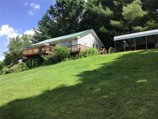 Discover your private escape in the heart of Dansville-where tranquility, nature, and seclusion come together beautifully. Back on the market and ready to impress, this inviting ranch-style home offers a warm and cozy retreat with an open floor plan designed for effortless living. The functional kitchen comes equipped with all appliances and even includes select furnishings, making this a move-in-ready opportunity. Step outside onto the expansive wraparound deck and take in the breathtaking views of three large, spring-fed ponds-rich with fish and surrounded by peaceful natural beauty. Wander through the wooded acreage along established paths perfect for quiet hikes, bird watching, or simply enjoying the abundance of local wildlife. A detached carport adds convenience, while the property's unique location bordering Stony Brook State Park enhances the sense of serenity and adventure right at your doorstep. An existing survey with a certificate of no change is included for added peace of mind. If you've been dreaming of a place where life slows down and nature surrounds you, this is your chance.
