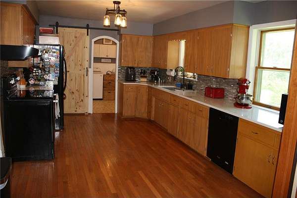 Welcome to this beautiful country setting home on over 6 acres of pure "nature". Enjoy the peace and quietness out in the country and escape from everything that's on your mind. This extensively updated 3 bedroom 3 bath home is located on a paved road and is ready for its new owners. Home has everything you need on the main level. The current owners have freshly redone all the hardwood floors upper and lower and has fresh paint on all the walls, added a brand new full bathroom to the primary suite (main floor bedroom), all new main floor laundry area with 1/2 bath and new flooring in the entryway are just some of the highlights. Enjoy cooking in the large kitchen and eat in the spacious formal dining room with updated lighting and freshly painted walls. The large family room with French doors can accommodate your large gatherings and includes a fireplace so you can enjoy the cold winter nights. There are two large bedrooms on the upper level with hardwood floors and a large full bathroom with plenty of storage space as well. The oversized two car detached garage is insulated and heated and has a floor drain. The outbuildings on this property are in amazing condition. The home, barn and several of the other buildings have newer metal roofing. One of the sheds is a working chicken coop for those fresh eggs. The back yard has a new fully fenced in yard for the little ones and your furry animals. The Septic system is compliant and was installed just three years ago. The big ticket items have already been completed including a brand newer 2 stage furnace, A/C unit with all new duck work throughout the entire home including the attic, along with a new water heater in the basement. If you're looking for a wonderful home with beautiful acreage and tons of outbuildings for storage this is it, you will not be disappointed! Come take a look and make this your new home.