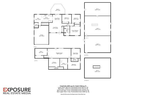 - Basement, Bathroom x 2, Bedroom x 4, Dining Room, Kitchen, Laundry, Living Room, Office