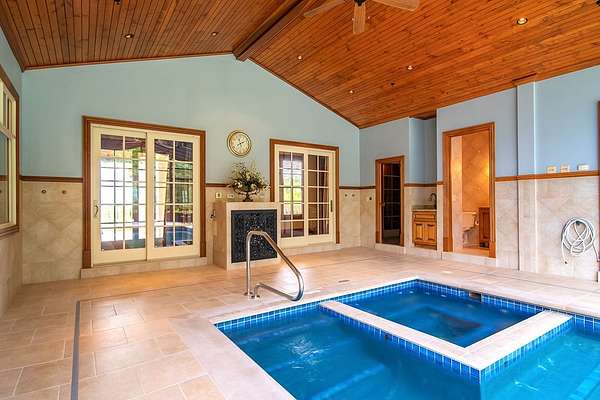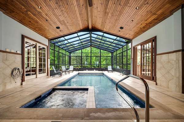 P-Experience unparalleled luxury in this 8,000 sqft estate on over 5 pristine acres. This magnificent home boasts a gated entrance, providing ultimate privacy. Inside, enjoy the year-round comfort of geothermal HVAC, an indoor swimming pool, and a relaxing sauna. The main level features spacious living areas, a gourmet kitchen, and elegant finishes. An elevator effortlessly connects both levels, including a full finished basement with a theater room, second kitchen, and abundant space for entertainment. This exquisite property offers sophistication, comfort, and privacy in a serene setting. Don't miss the opportunity to own this private paradise!