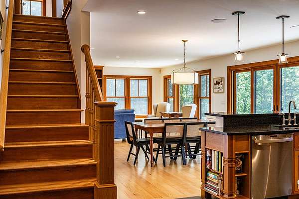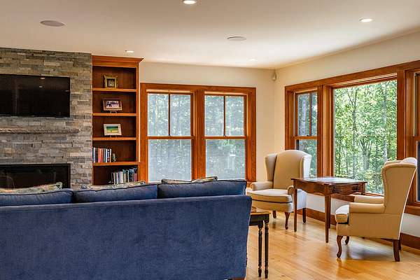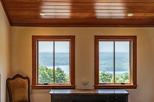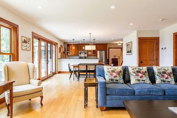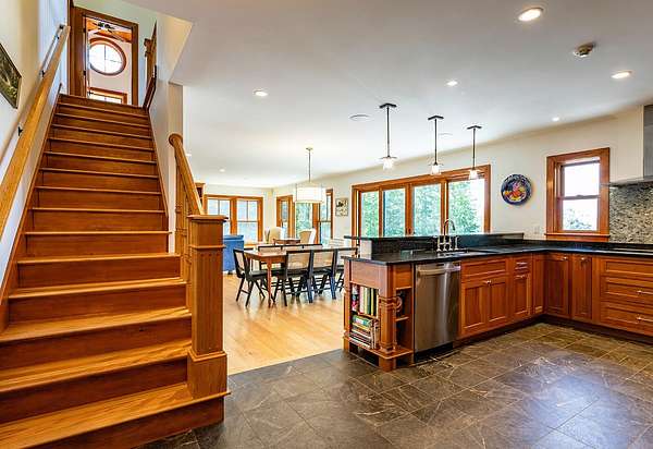 Discover unparalleled quality in this custom-built Sedgwick home, constructed in 2021. Perched on Caterpillar Hill, it boasts expansive views of Walker Pond. This 3-bedroom, 2.5-bath residence offers a first-floor primary suite featuring a walk-through closet and a luxurious tiled en-suite bathroom with a massive tub and heated towel rack. Modern amenities abound, including in-floor radiant heat, heat pumps, a whole-house generator, fiber optic internet, and a security system. Enjoy the warmth of a gas fireplace, the convenience of a butler's pantry, and the tranquility of a screened-in porch. An integrated Sonos sound system elevates the living experience. High-end materials are evident throughout, with oak and ceramic tile flooring, black granite countertops, cherry cabinetry, cedar shingles, and an attached two-car garage. Conveniently located 10 minutes to beautiful Blue Hill, 15 minutes to the famous Wooden Boat School in Brooklin, and only an hour to Bangor International airport.